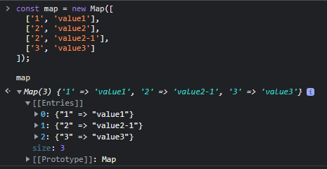 그래서 Map 객체에서 key는 중복되지 않는 특징을 가지고 있습니다. - Map 객체는 get, set, has와 같은 함수로 데이터를 쉽게 접근하고 검사할 수 있습니다.