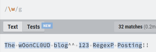 | \w | ASCII 워드 문자. [a-zA-Z0-9]와 같다. |