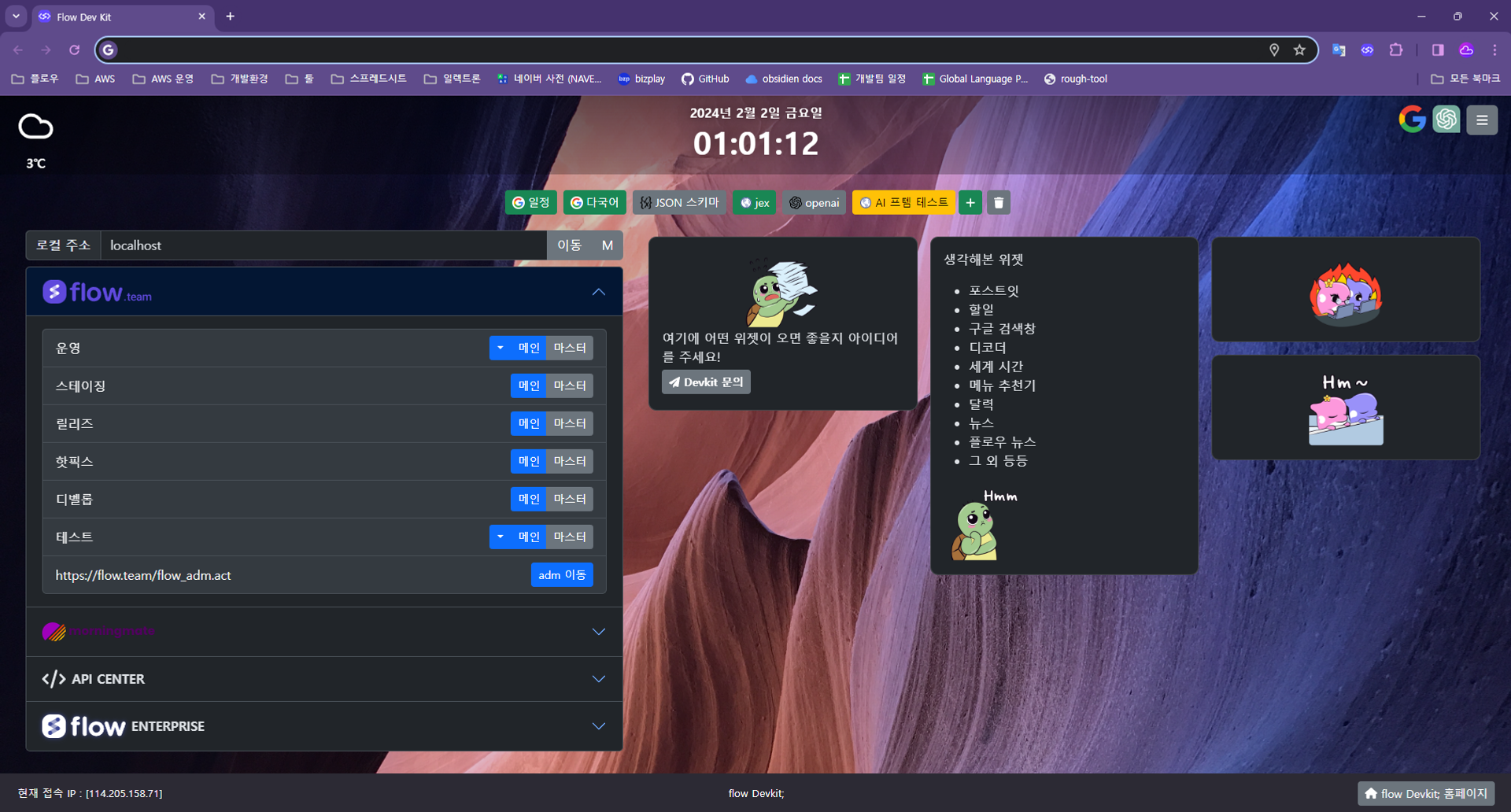 모멘텀처럼 시계를 보여주는게 끝이 아니고 flow에 들어가면 각종 보조 기능을 추가준다. 예를 들어서 회원가입 자동화라던지, 업무번호 복사나 사용자, 기업정보를 쉽게 볼수 있게 해주기 등 역할이 있다.