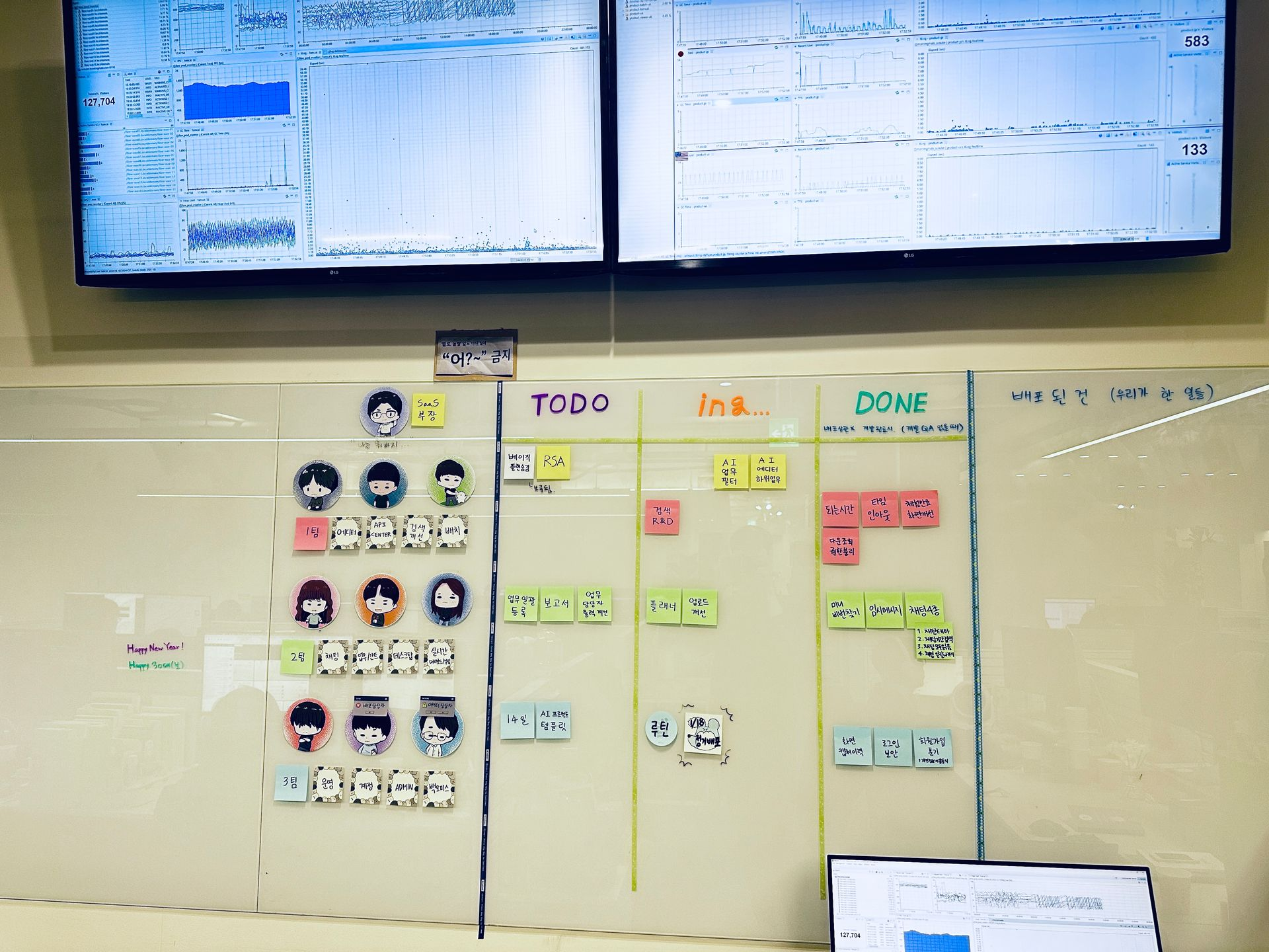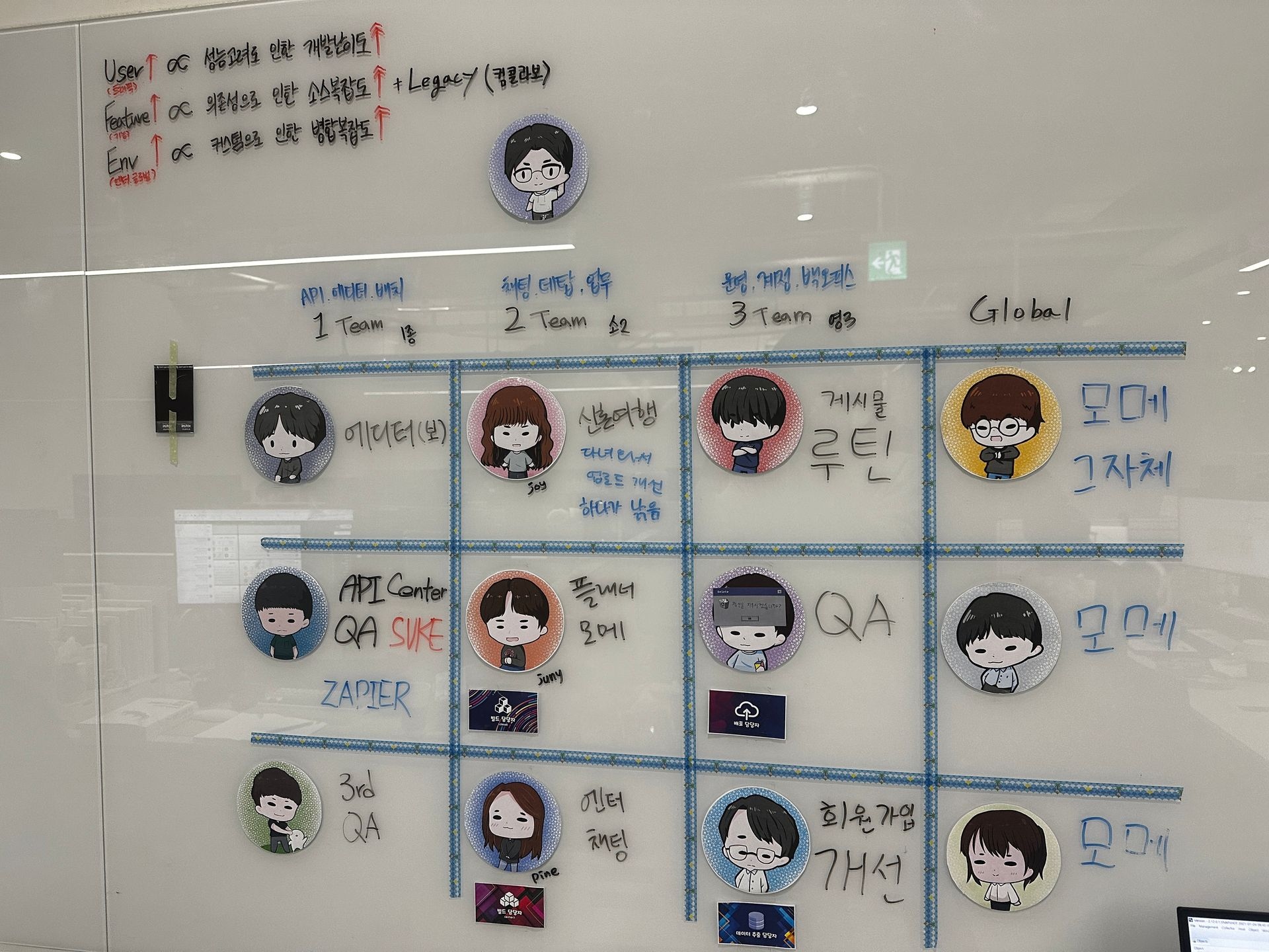 23년도 초에 내가 사람들에게 그려준 그림을 프린트하여 붙이니 예쁘고 우리팀이 특별하다는 느낌을 얻었다.