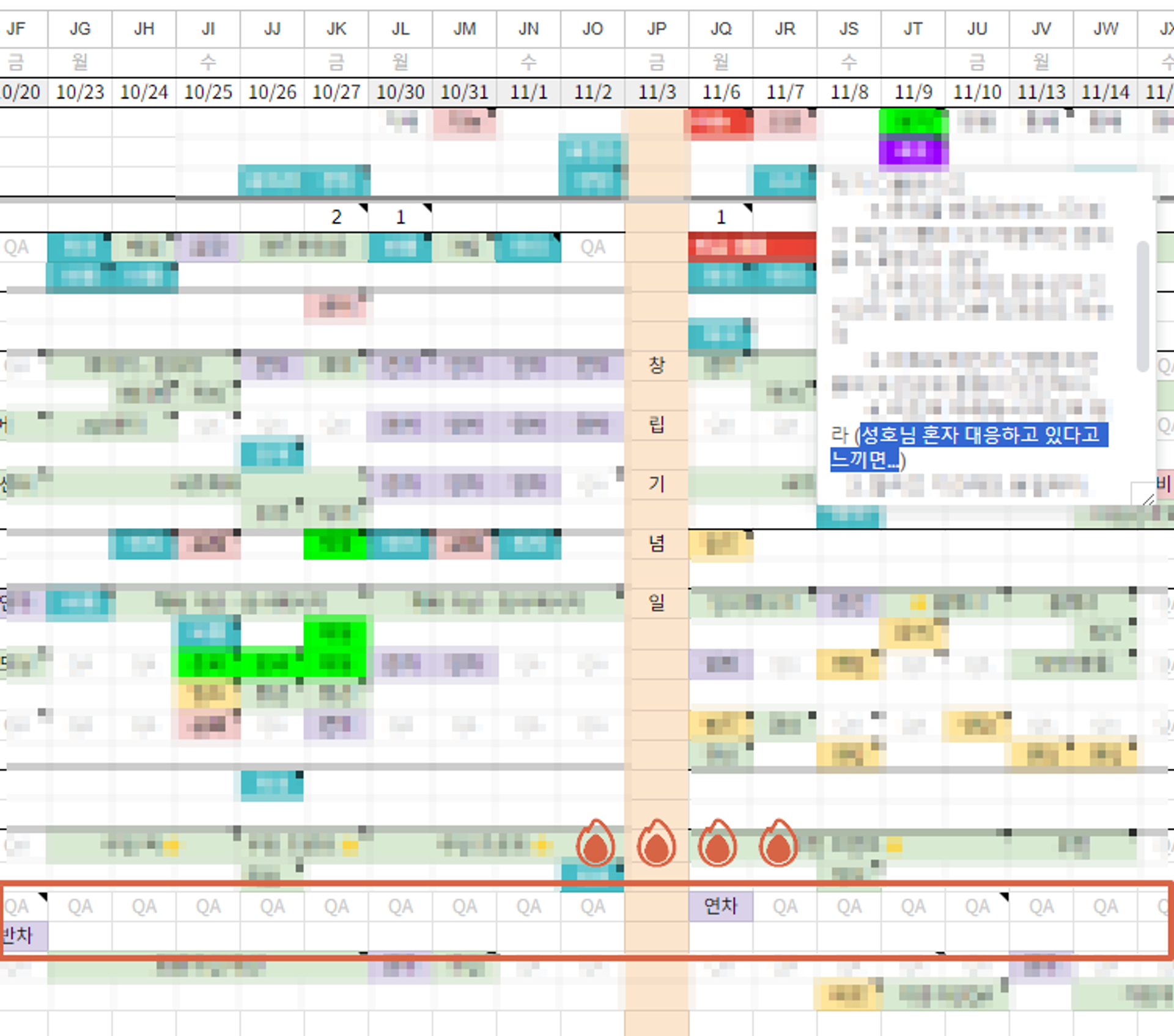 빨간색 테두리로 친 부분이 나의 스케줄이다. QA라고 적혀있는데 유지보수한다고 보면 된다.