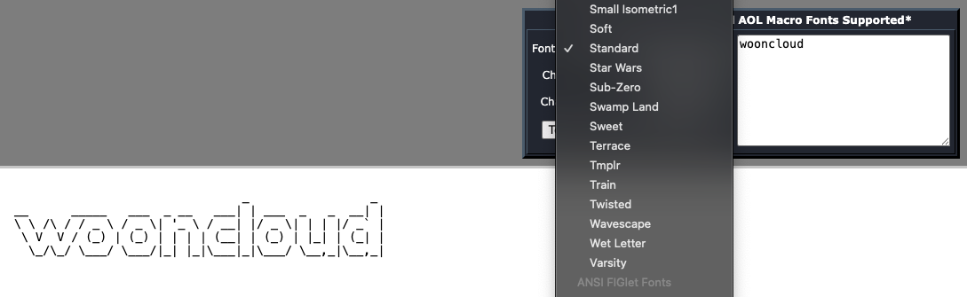 이 링크로 들어가도 좋고, 구글에 ASCII Art Generator 라고 치면 나온다.