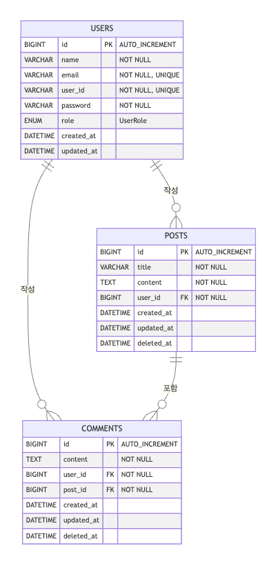 그리고 Post와 Comment는 deletedAt를 넣음으로서 soft delete 정책을 가져가려고 한다.