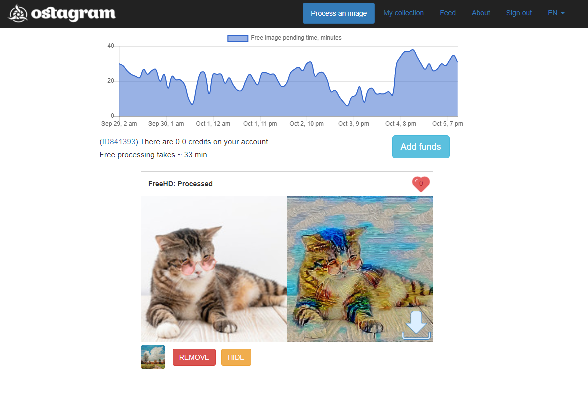 마지막으로 최상단에 있는 Process an image 버튼을 눌러주면 인공지능이 합성을 시작합니다.