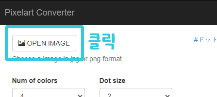 OPEN IMAGE를 선택하여 사진을 고릅니다.