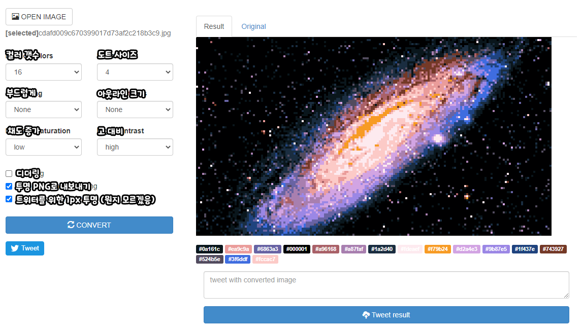 저는 안드로메다 은하를 픽셀 이미지로 바꾸어 보았는데요.