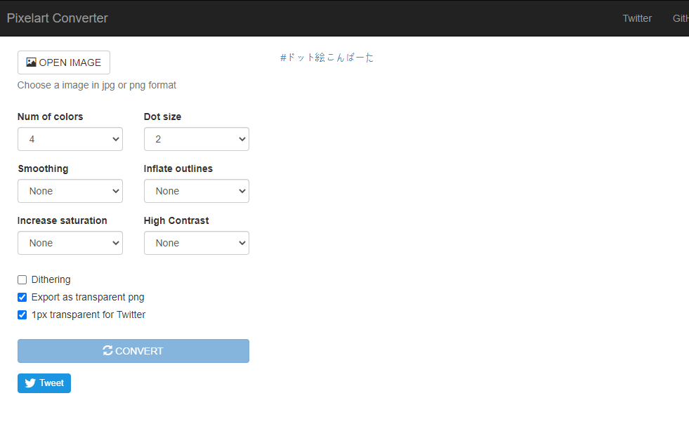 画像をモザイク化→色をクラスタリングしてドット絵っぽくします。 途切れ途切れの輪郭線とかノイズのドットが気になるときは平滑化するとマシになるかも。 質問とか要望とか言いたい