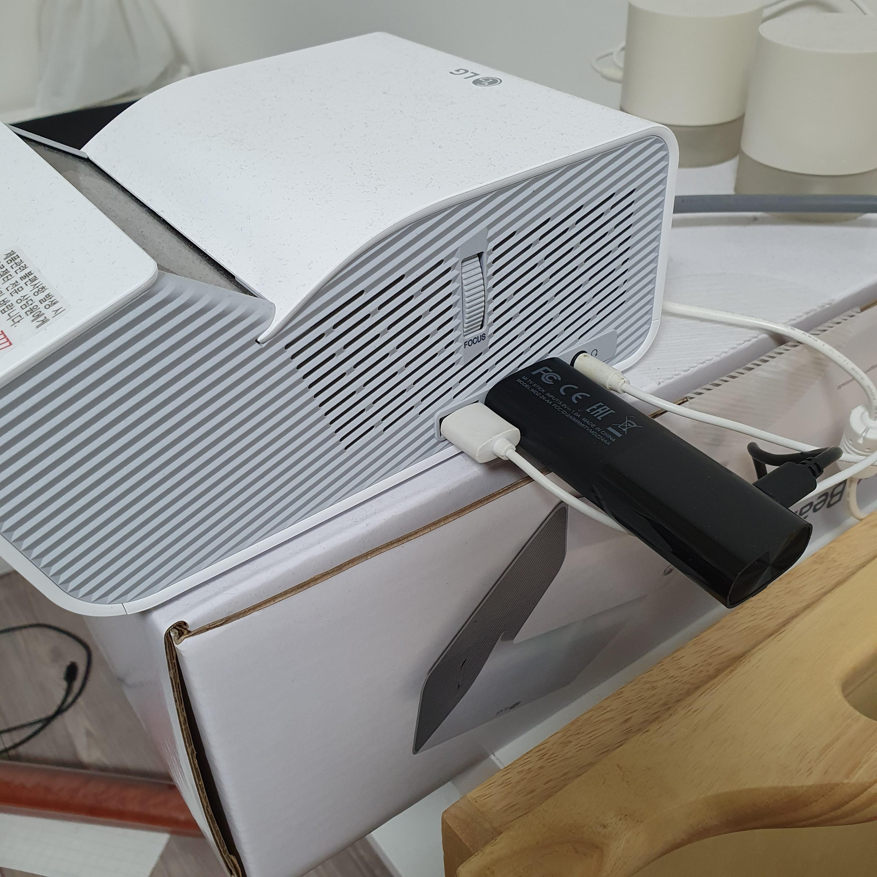 빔프로젝트 HDMI에 이렇게 미 TV 스틱을 그대로 꽂아서 사용할 수 있습니다.