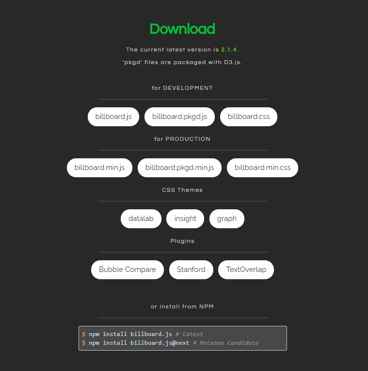 billboard.js 웹사이트로 이동하여 최 하단에 Download 섹션이 있습니다.