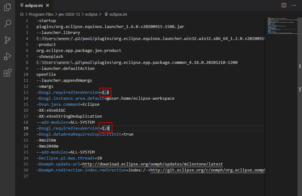 위의 Dosgi.requiredJavaVersion에 버전 숫자가 11로 되어 있음을 알 수 있습니다.