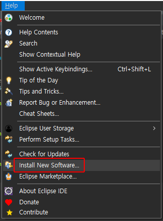 그럼 상단 메뉴에 Help를 클릭하고 Install New Software를 클릭합니다.