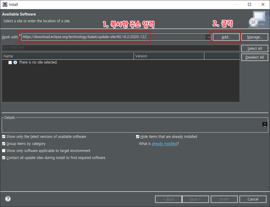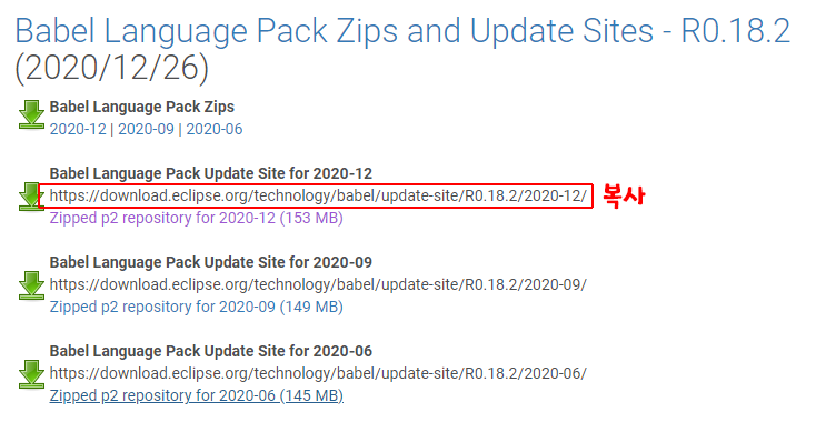 1. Eclipse Babel Project 다운로드 링크 복사