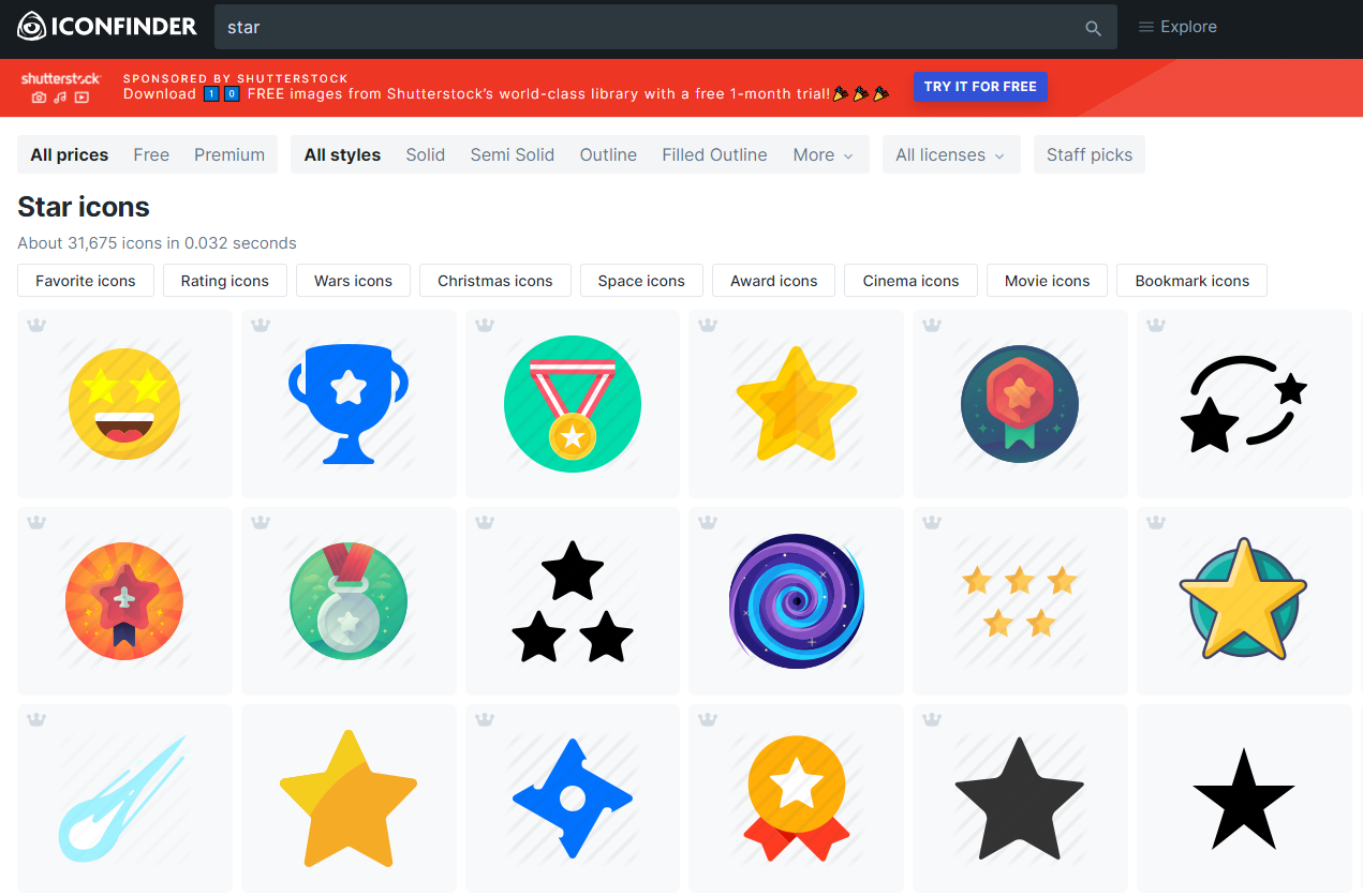 star로 검색하니까 아래의 검색된 아이콘들이 보입니다.
