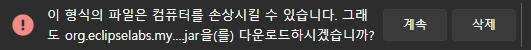 다운로드하면 아래와 같은 경고 사항이 나옵니다.