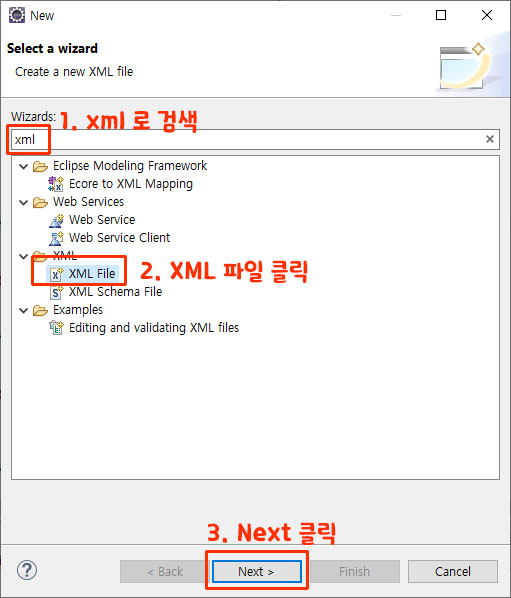 이클립스를 켜고 Ctrl + N을 눌러서 새 파일을 만들어 줍니다. 아래의 절차대로 따라오면 만드실 수 있습니다.