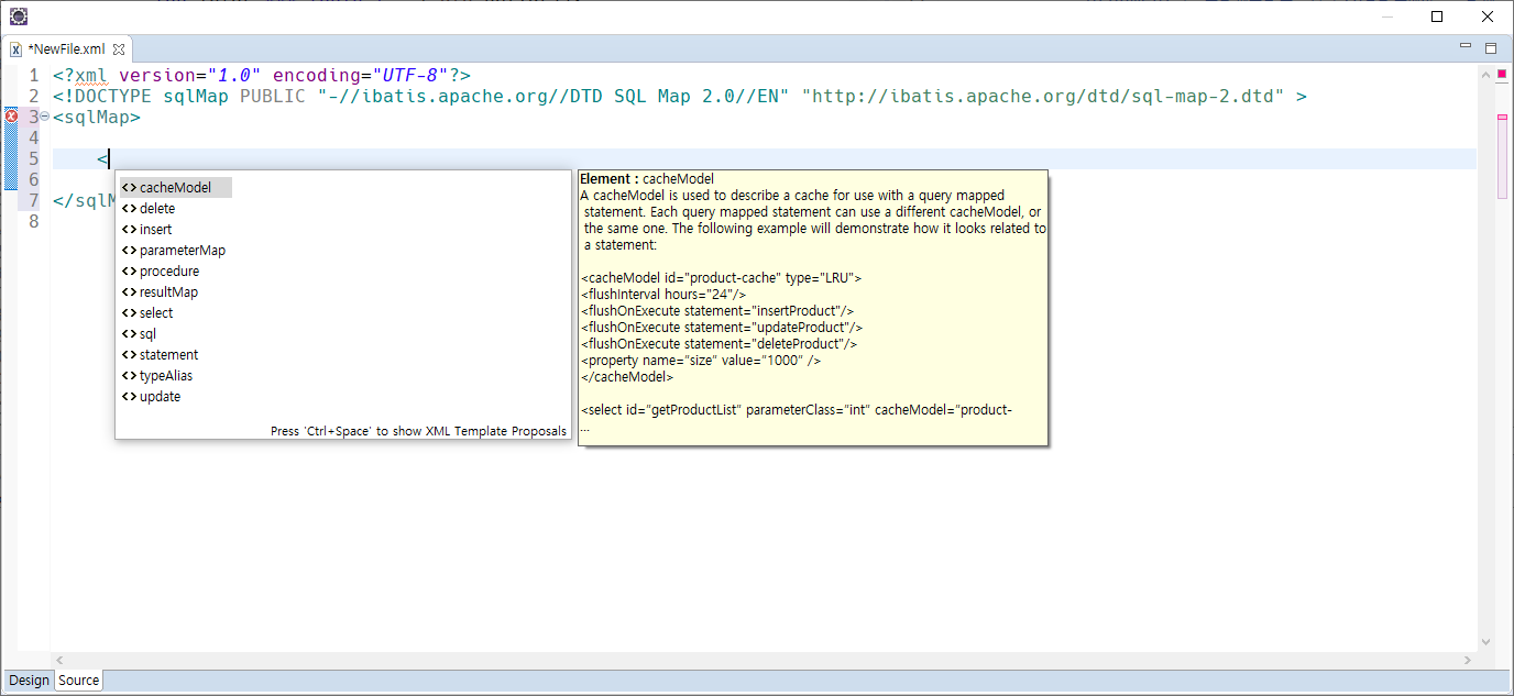 MyBatis Sql Map DTD만 가지고 있으면 이클립스가 태그를 자동 완성도 해주고 작성도 편하게 해 줍니다.