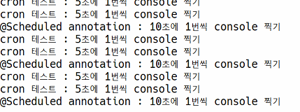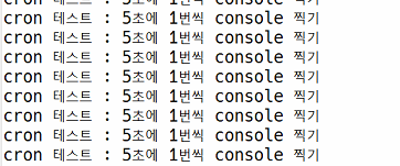System.out.println("cron 테스트 : 5초에 1번씩 console 찍기");