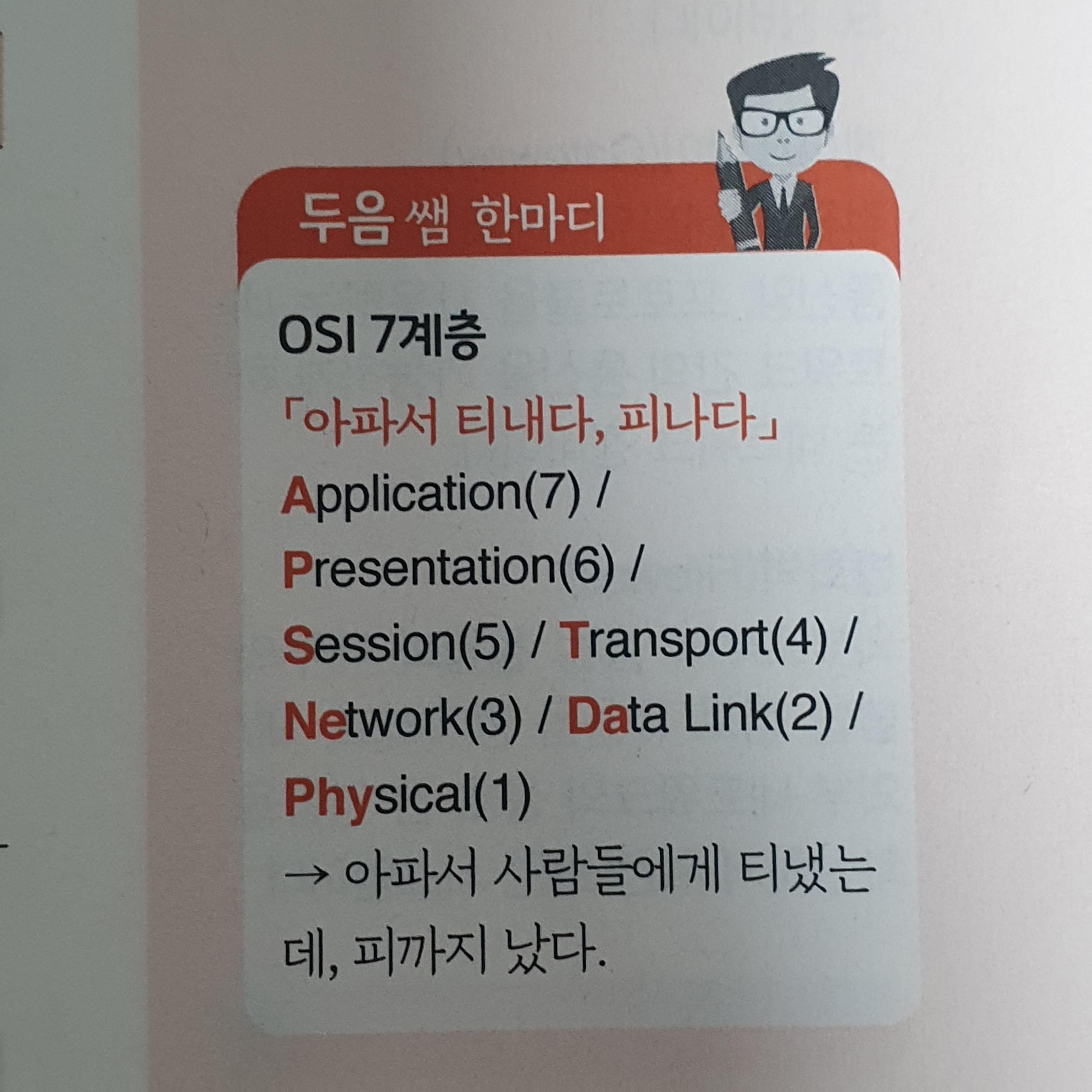 두음쌤의 명언 중에 하나죠. OSI 7계층은 정말 중요한 개념 중에 하나인데 그걸 쉽게 외울 수 있도록 도와줍니다.
