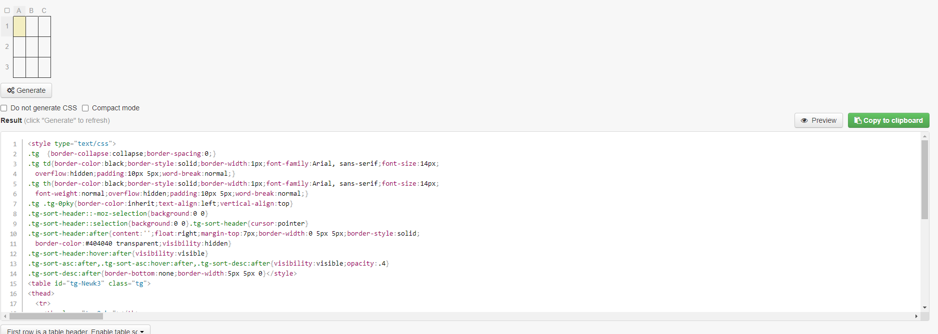 위의 표를 수정하고 아래의 Generate 버튼을 누르면 위의 표를 구현시켜줄 HTML 코드가 완성됩니다.