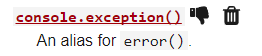 console.error()의 별명입니다. 같은 역할을 하지만, 사용하지 말라고 합니다.