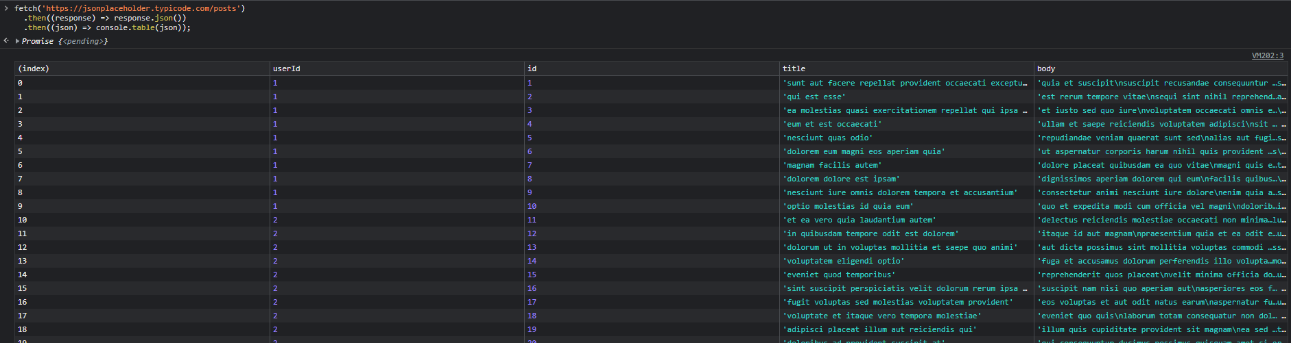 fetch('https://jsonplaceholder.typicode.com/posts')