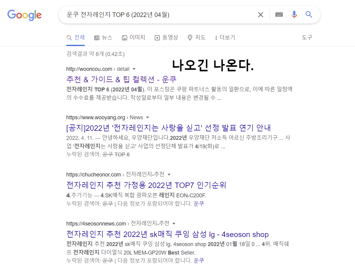 들어가면 쿠팡 파트너스 링크로 가득 찬 게시글밖에 없지만, 그 게시글도 정말 내용이 성의가 없습니다. ㅎㅎ