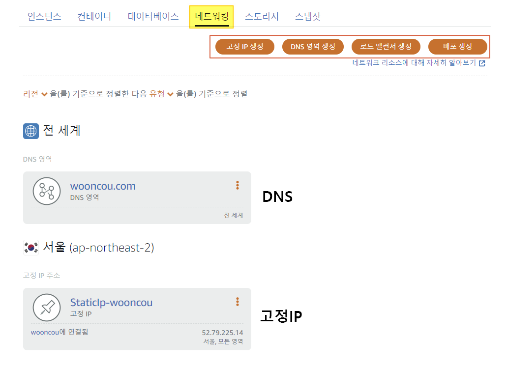 고정 IP에 AWS Route 53에서 구입한 도메인 주소를 연결하여 사용할 수 있습니다. 저는 wooncou.com 도메인이 있어서 바로 사서 사용하고 있습니다.