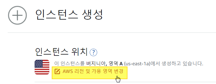 처음에 미국 버지니아로 인스턴스 리전이 선택되어 있습니다.