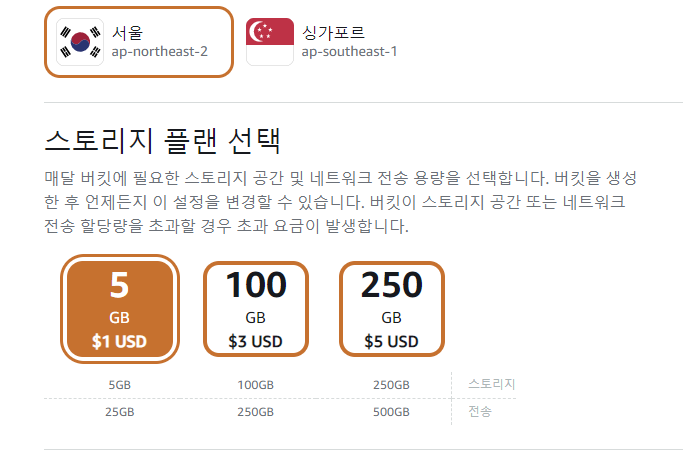 버킷 스토리지 가격이 1달러와 3달러의 성능 차이가 어마어마합니다. 1달러짜리는 왜 파는 거지..